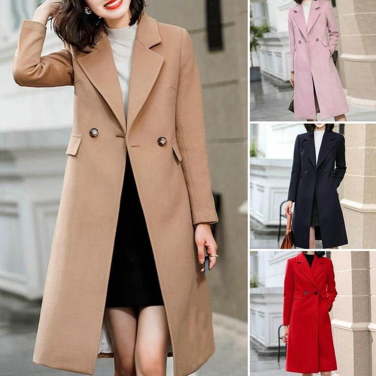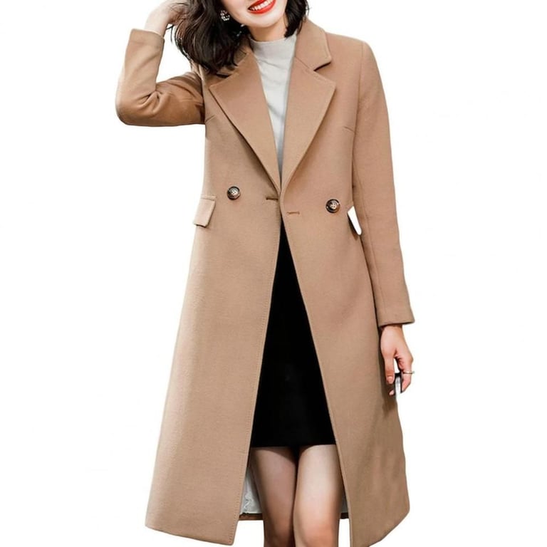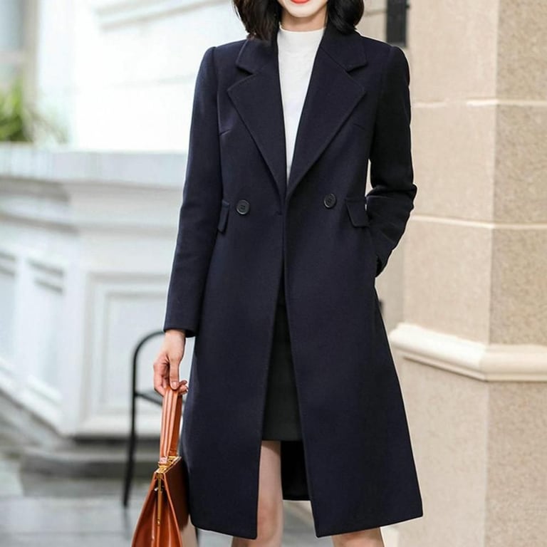 Very elegant women's simple long coat. The coat is suitable for cooler weather.
