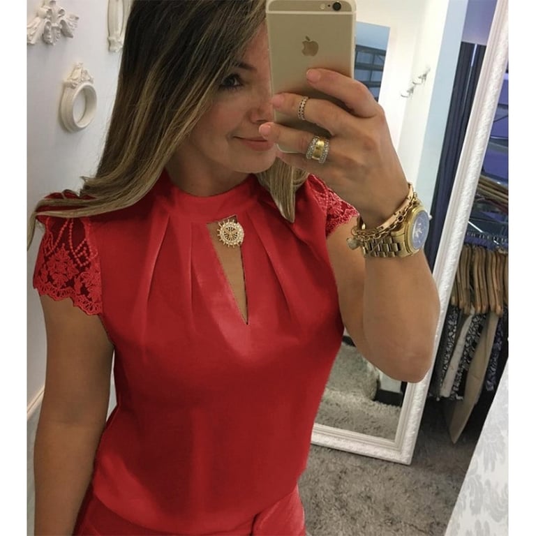 Women's Elegant Summer Sexy Blouse with Lace Short Sleeves