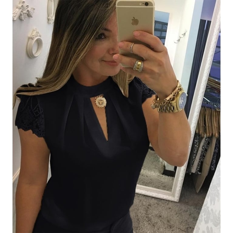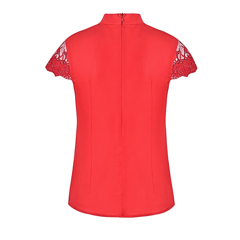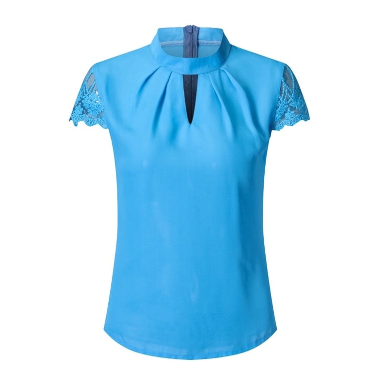 • Tags: women's blouse, short sleeve, lace, no neckline, elegant, blouse, company, simple