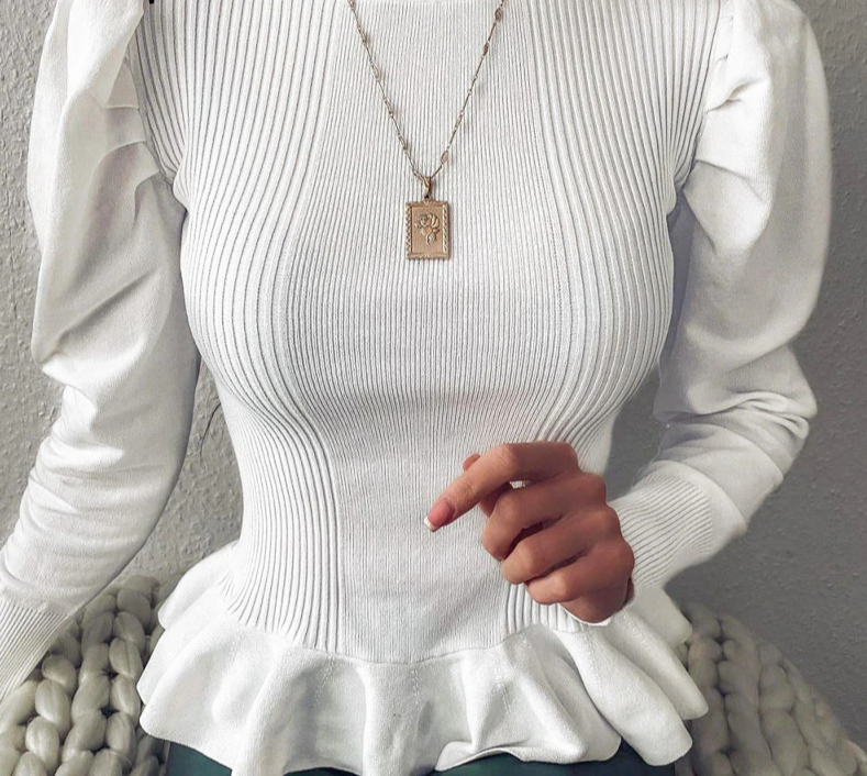 • Tags: Women's sweater, ruffled sweater, elegant sweater