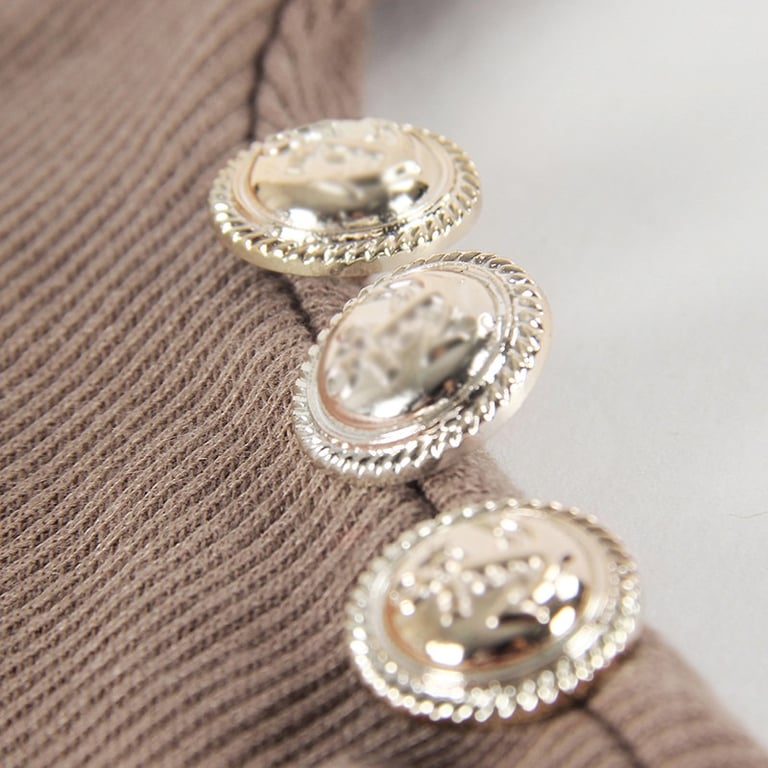 Flattering fitted turtleneck featuring decorative buttons on the sleeves and shoulders.