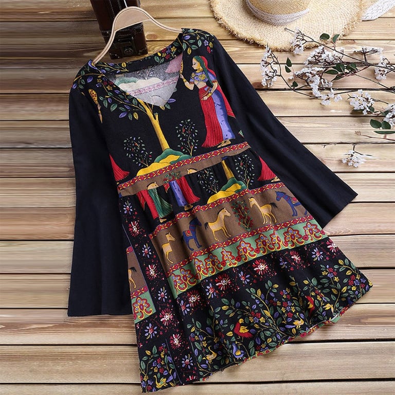 The elegant blouse with an attractive pattern will delight with its retro, vintage look.