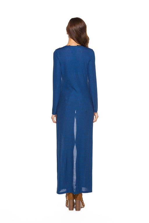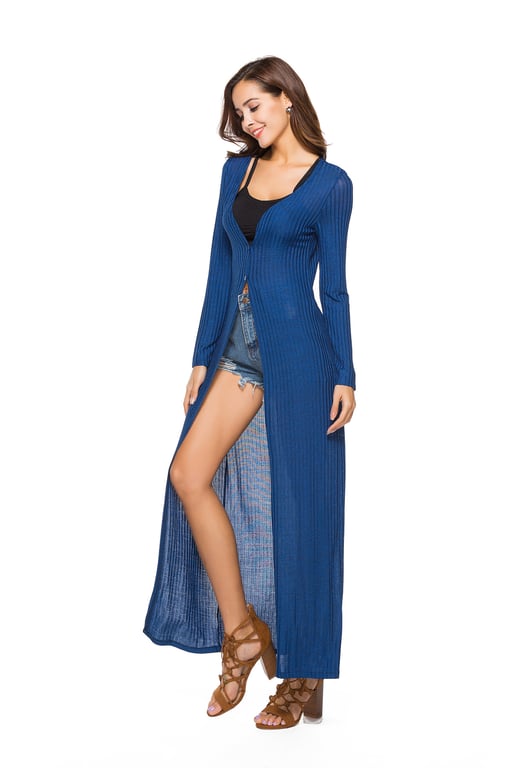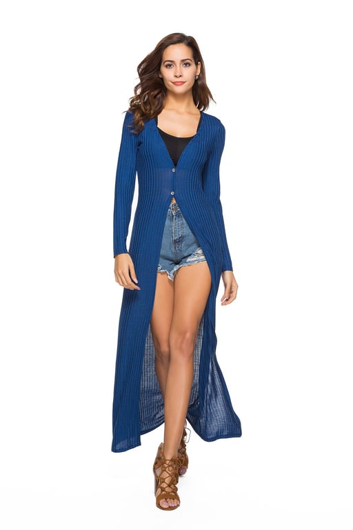 Long cardigan that fastens with two buttons. It has an elegant cut and long sleeves. Ideal for the spring season.