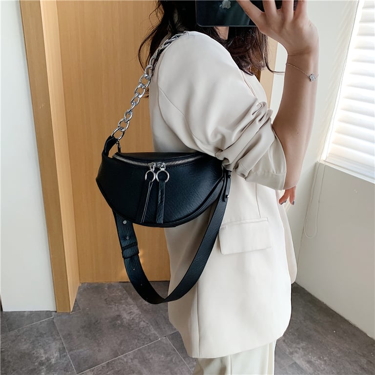 Women's Fashion Faux Leather Belt Bag with Chunky Chain