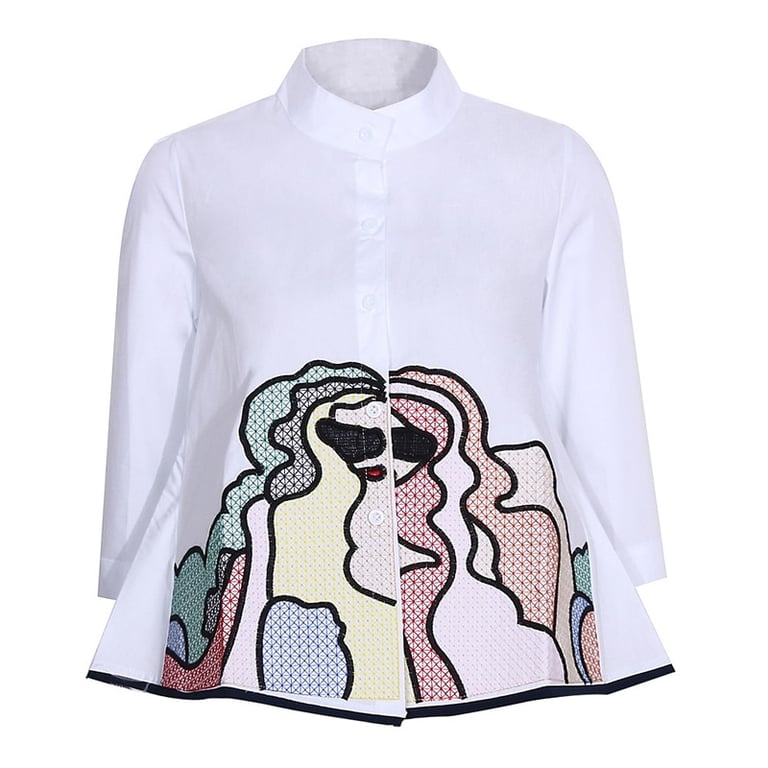 A fashionable blouse with a beautiful pattern, making it a MUST-HAVE piece.