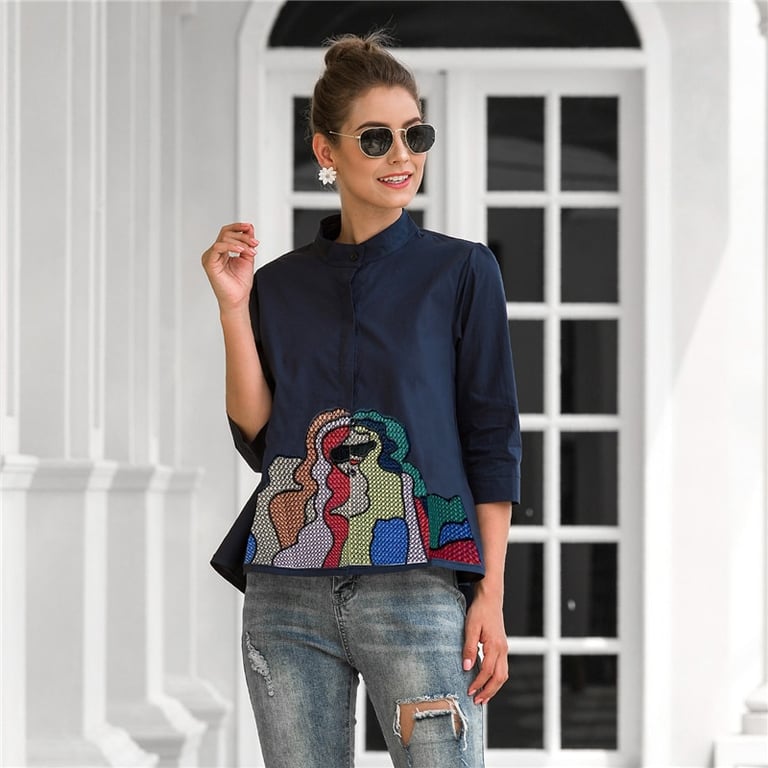 The shirt blouse features ¾ sleeves, making it ideal for the Spring/Summer season.