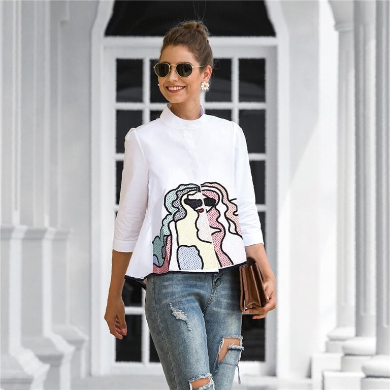 Women's Fashion Spring Shirt Blouse with Print and 3/4 Sleeves