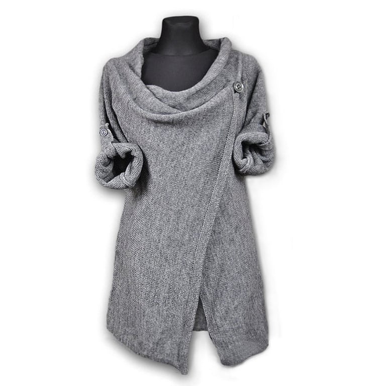 Elegant spring sweater that is wrap-style and fastens with a button. Available in 4 colours.