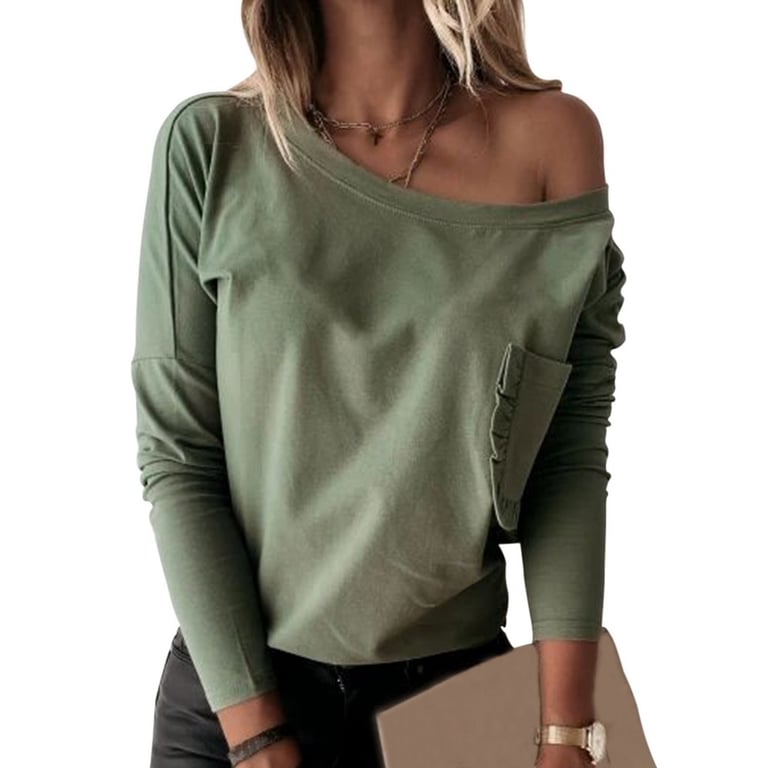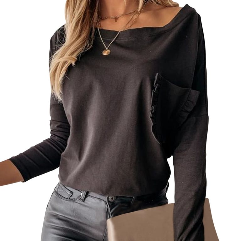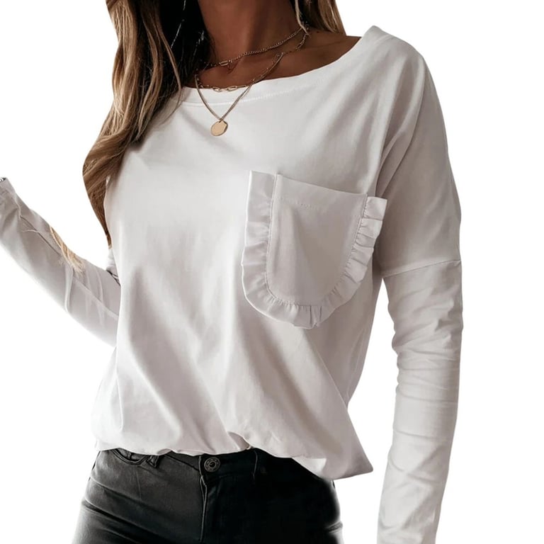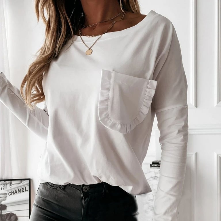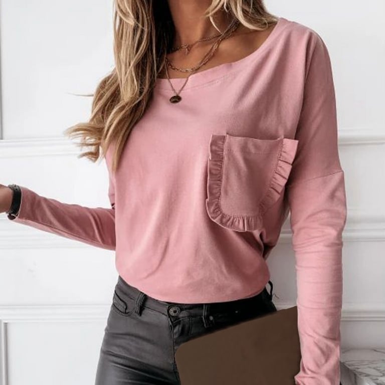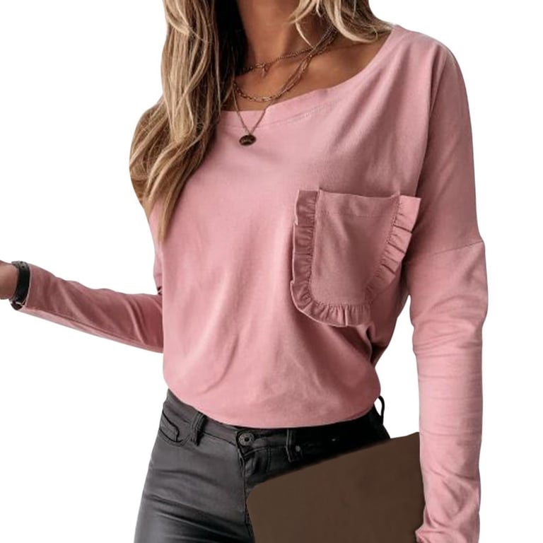 Women's Fashion T-Shirt with Pocket and Long Sleeves