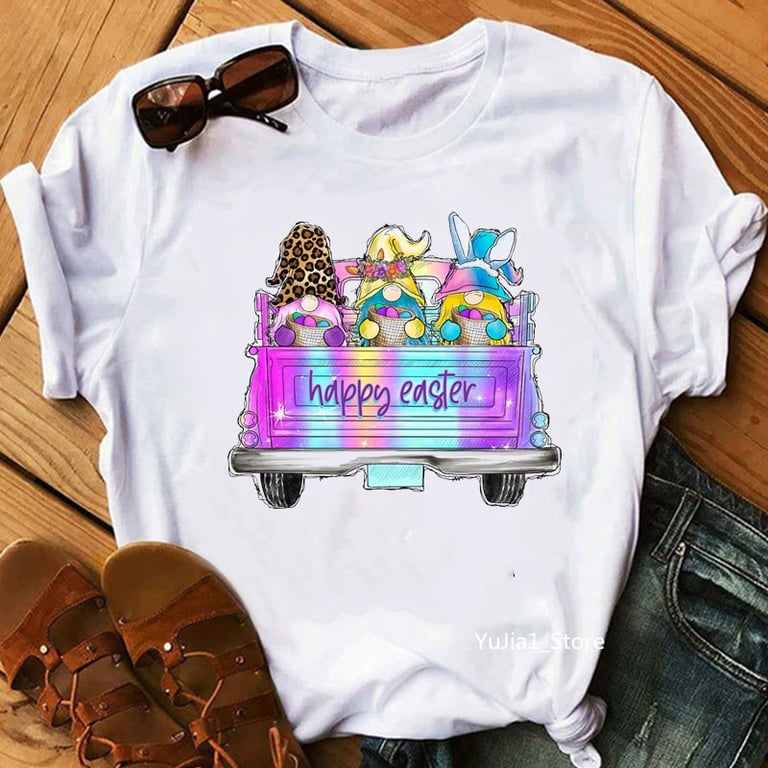 Women's Fashion T-Shirt with Short Sleeves and Rainbow Gnome Print