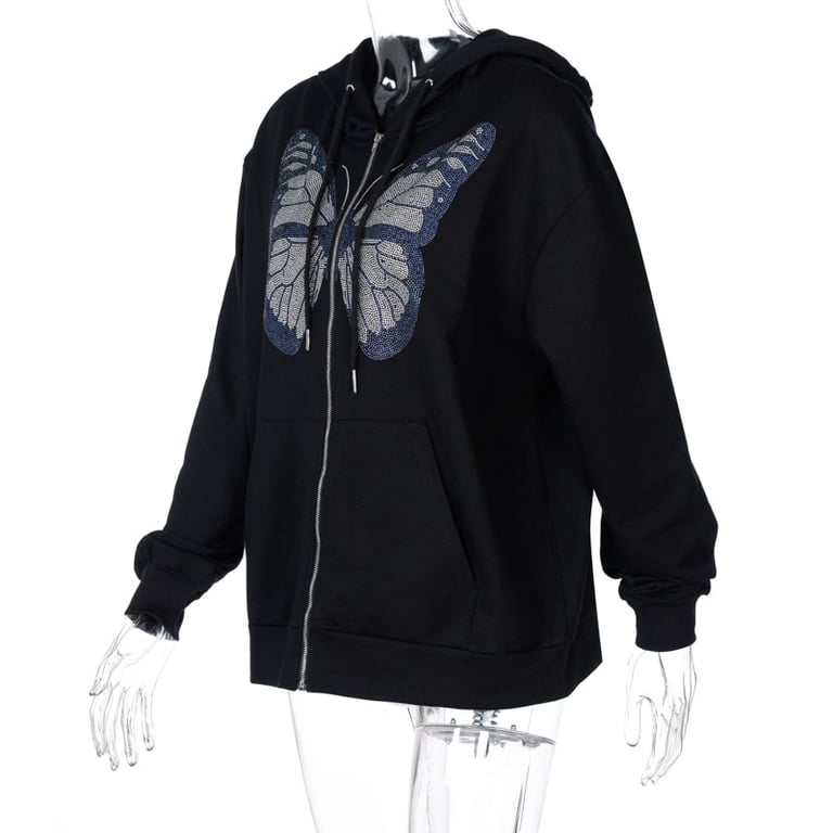 Women's Fashion Zip Hoodie with Butterfly