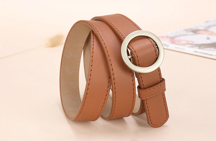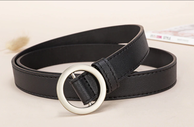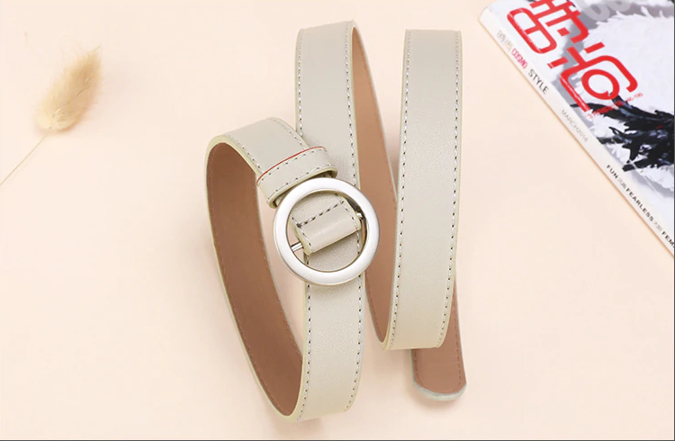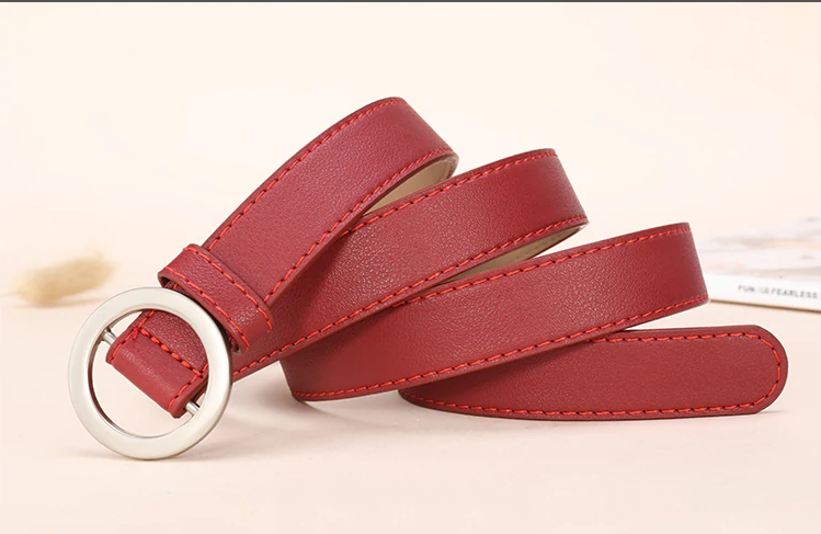Women's faux leather belt with a round buckle available in several colours. The belt beautifully enhances any outfit combination.