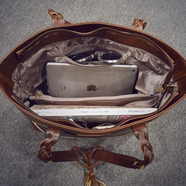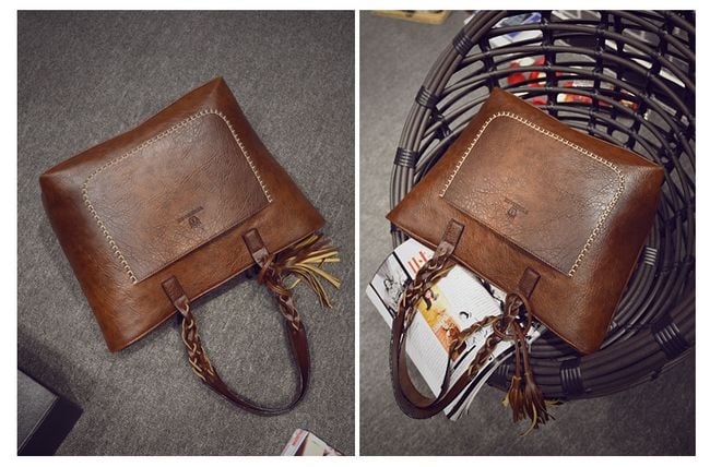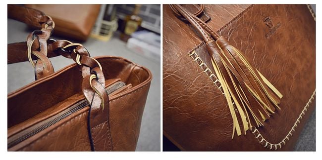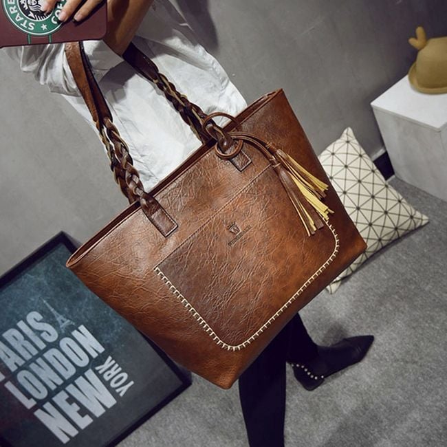 The women's handbag features a luxurious leather design and finish. It includes a trendy tassel that hangs from the handle. The handbag has a very pleasant inner lining and ample space for all your essentials. In addition to the main compartment, the handbag includes one outer pocket and four inner pockets. Practical and fashionable! Choose the most beautiful colour and treat yourself to true fashion luxury.