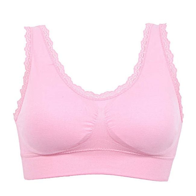 The elegant bra is ideal for fitness. The bra is made from lightweight material that is pleasant on the skin. It is trimmed with delicate lace on the sides. Available in 6 colour options.
