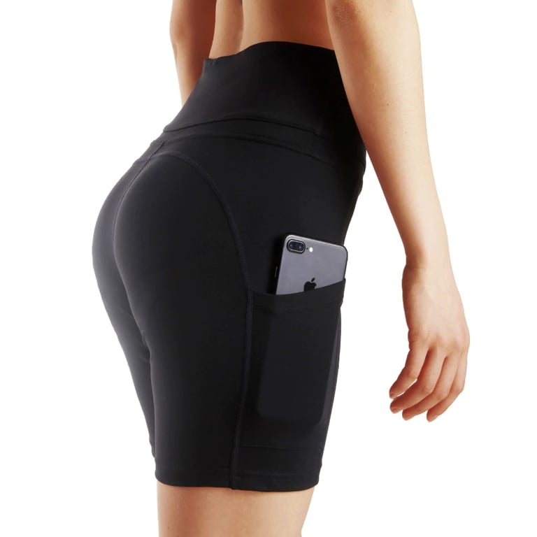 The shorts have side pockets for a mobile phone.