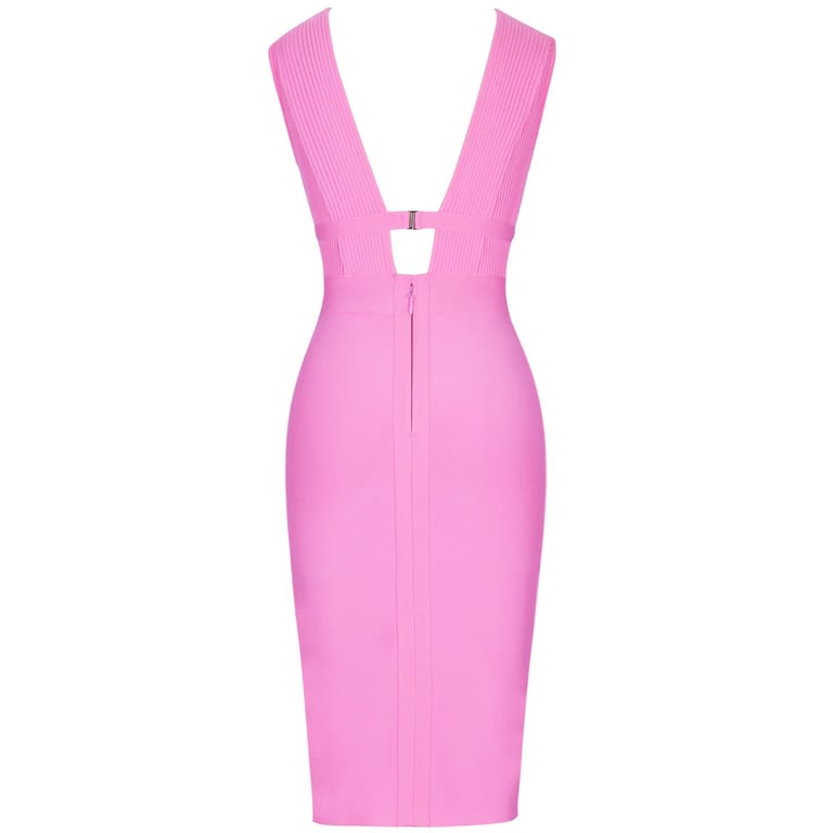 Women's fitted knee-length dress with a neckline.