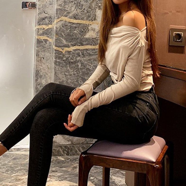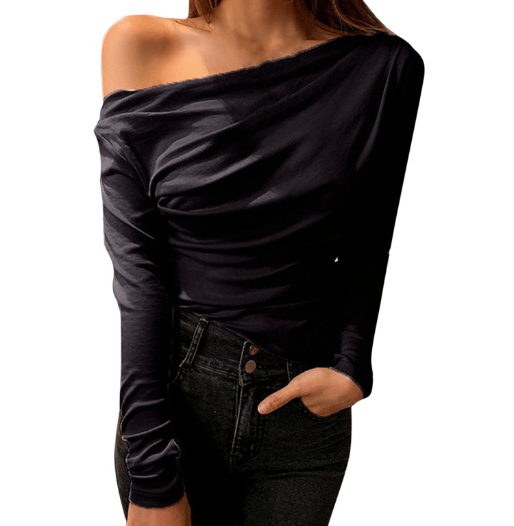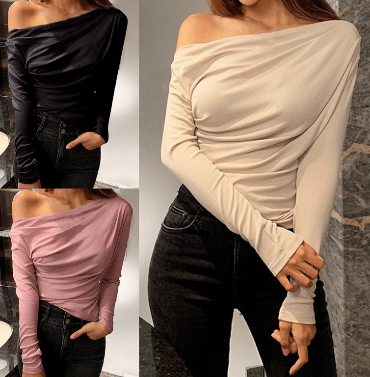 Women's Slim-Fit Long Sleeve Top with Exposed Shoulder