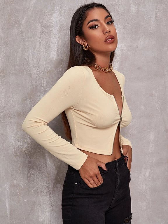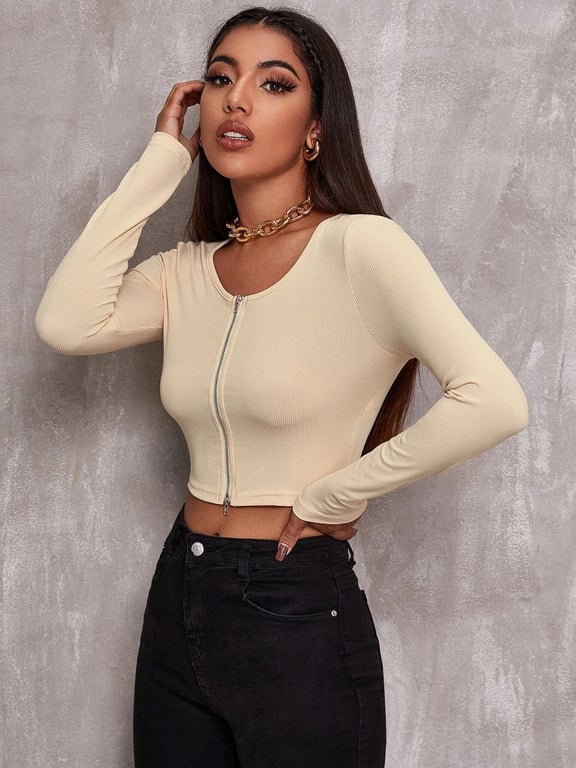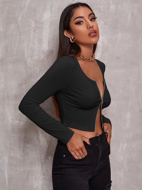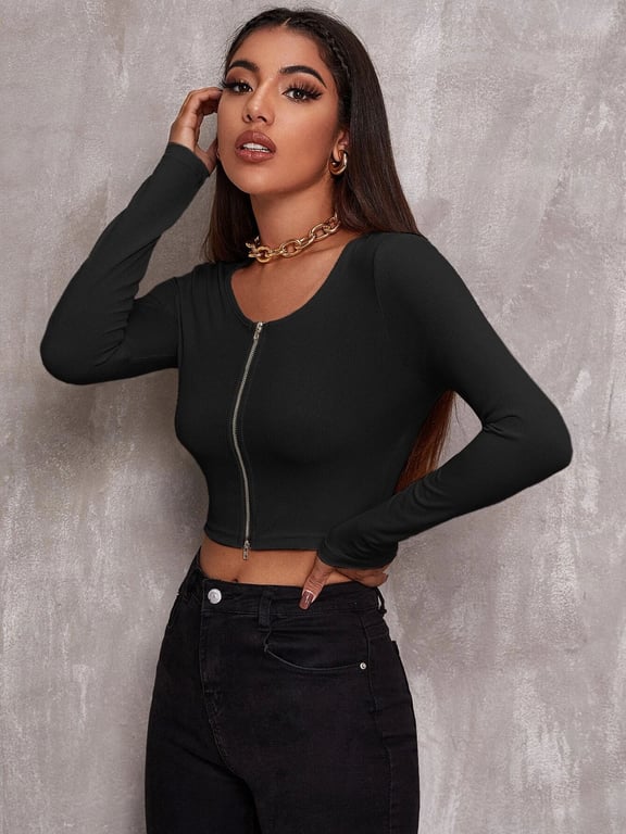 Tags: Women's top, women's t-shirt, women's long-sleeve t-shirt, women's clothing, women's fashion, women's long-sleeve top, simple t-shirt, zip top, openable top