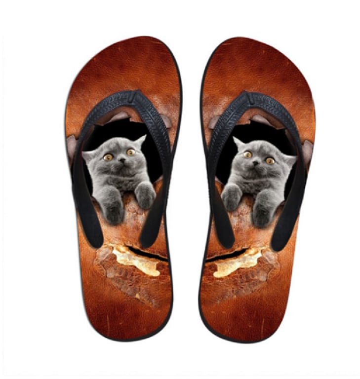 Do you love cats and enjoy wearing flip-flops? Then we have these flip-flops with a cat print for you.