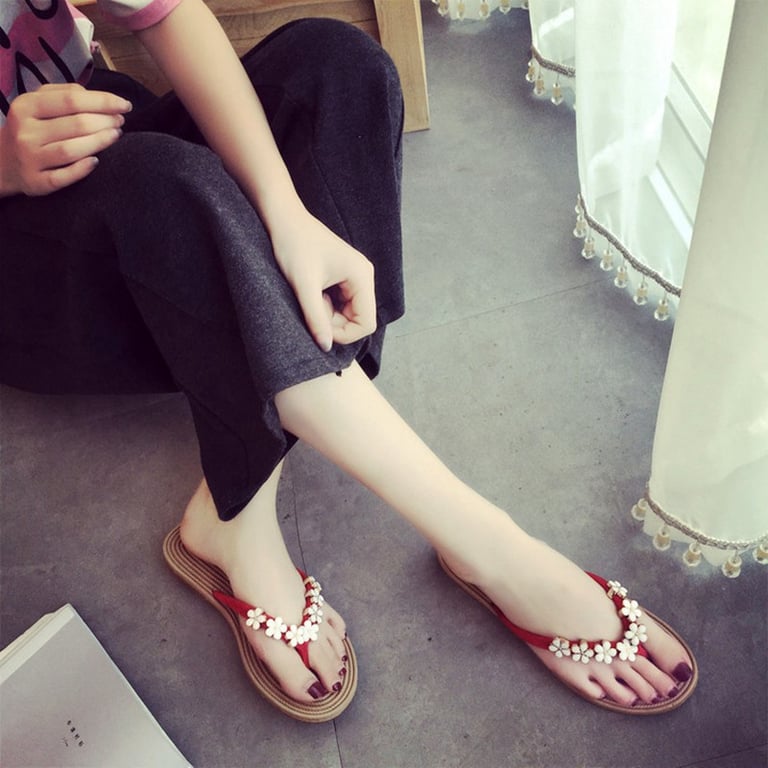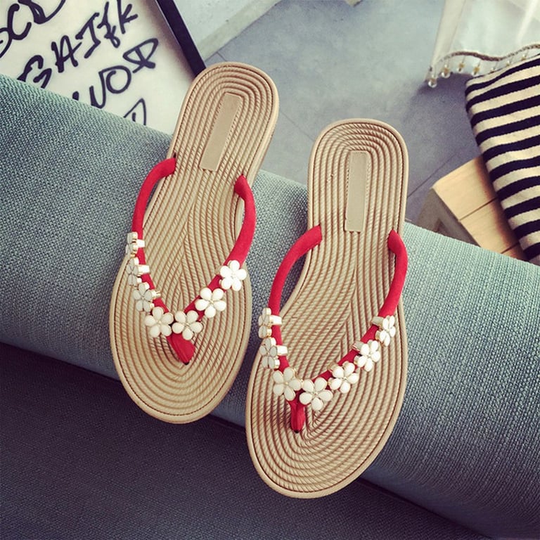 Women's flip-flops with flowers – red
