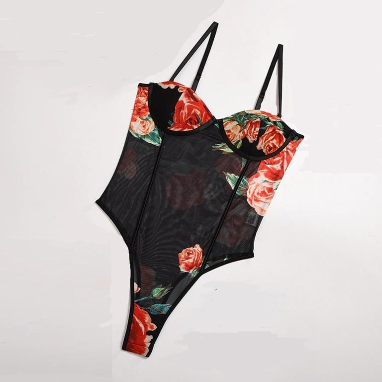 Women's Floral Bodysuit with Thin Straps