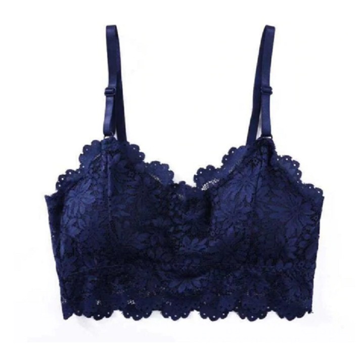 The bralette bra features floral lace that is very sexy.