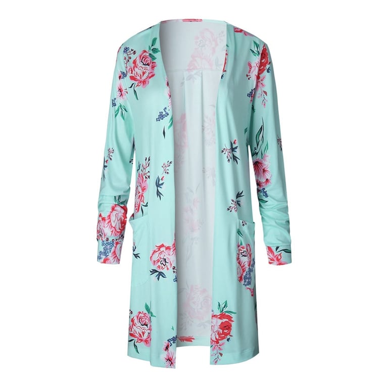 Women's lightweight cardigan/cover-up with long sleeves. No fastening. Loose comfortable fit. Delicate floral print. Available in several colour options.