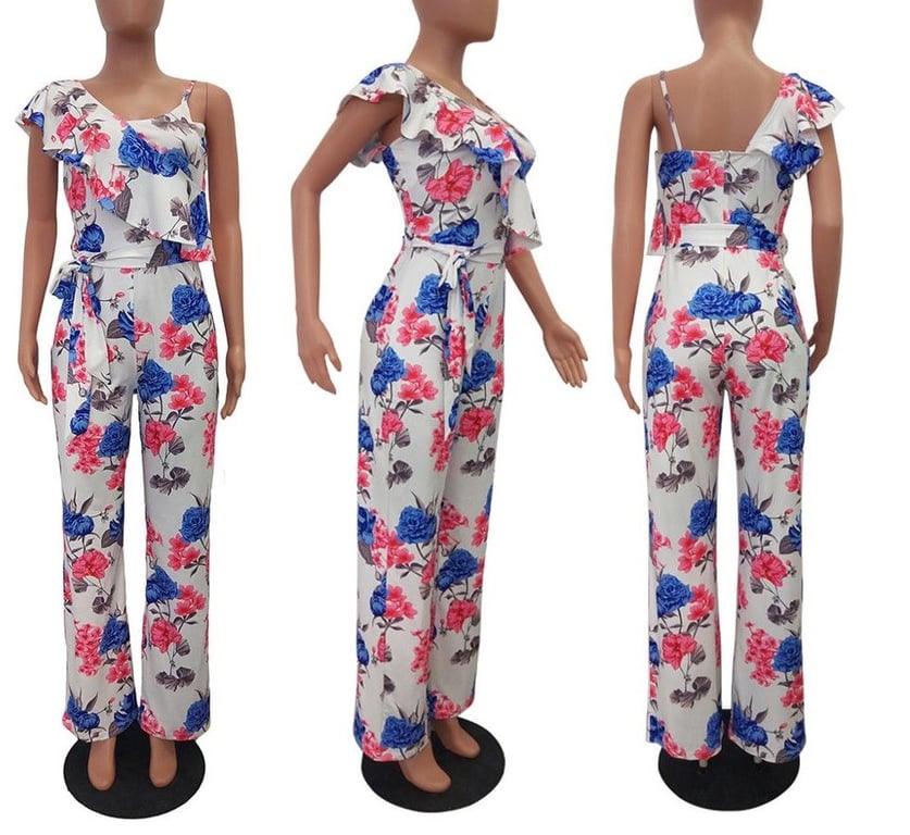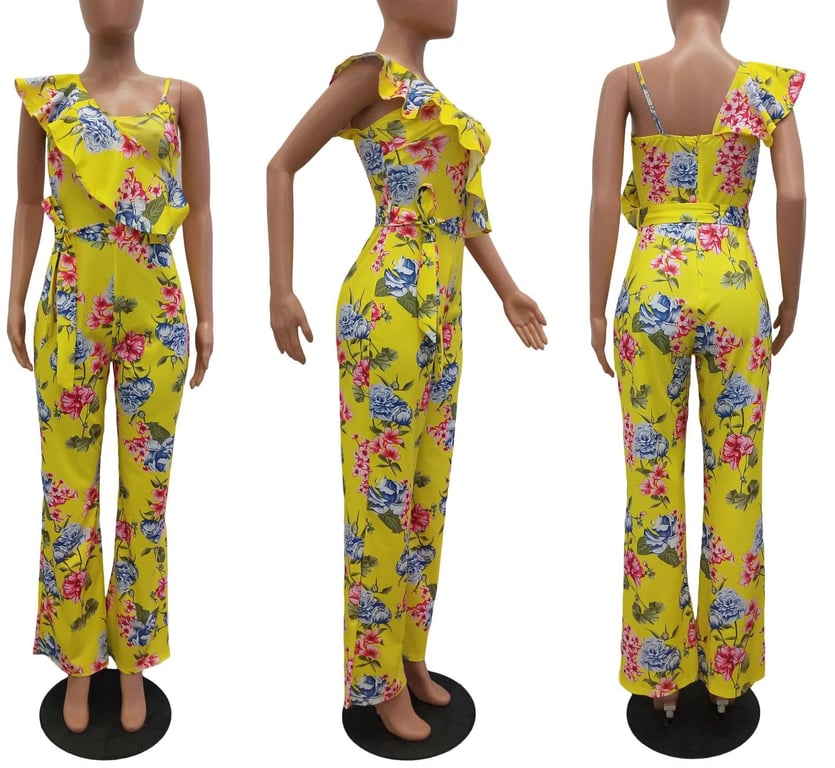 Women's floral jumpsuit with ruffle