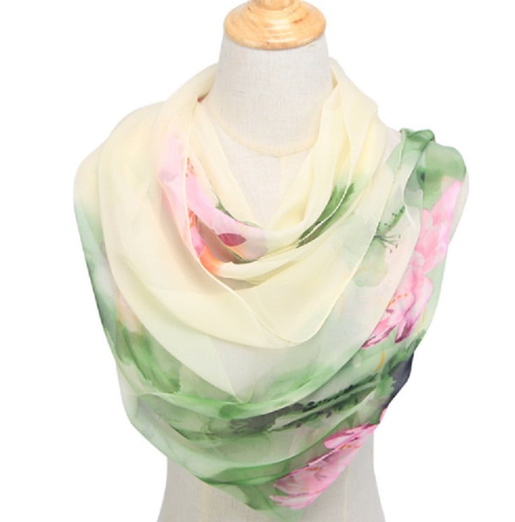 The women's lightweight floral scarf will be a great addition to your outfit.