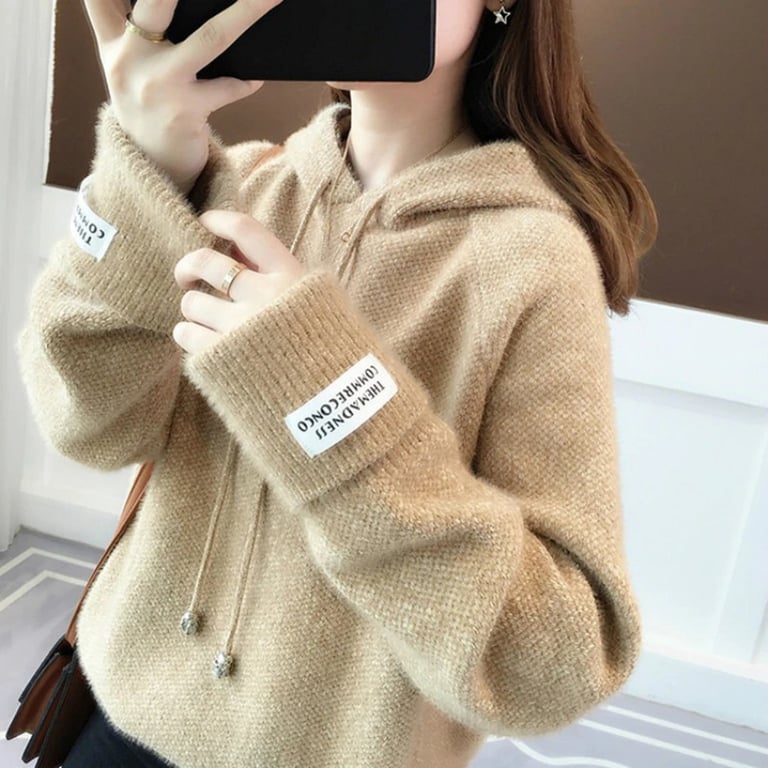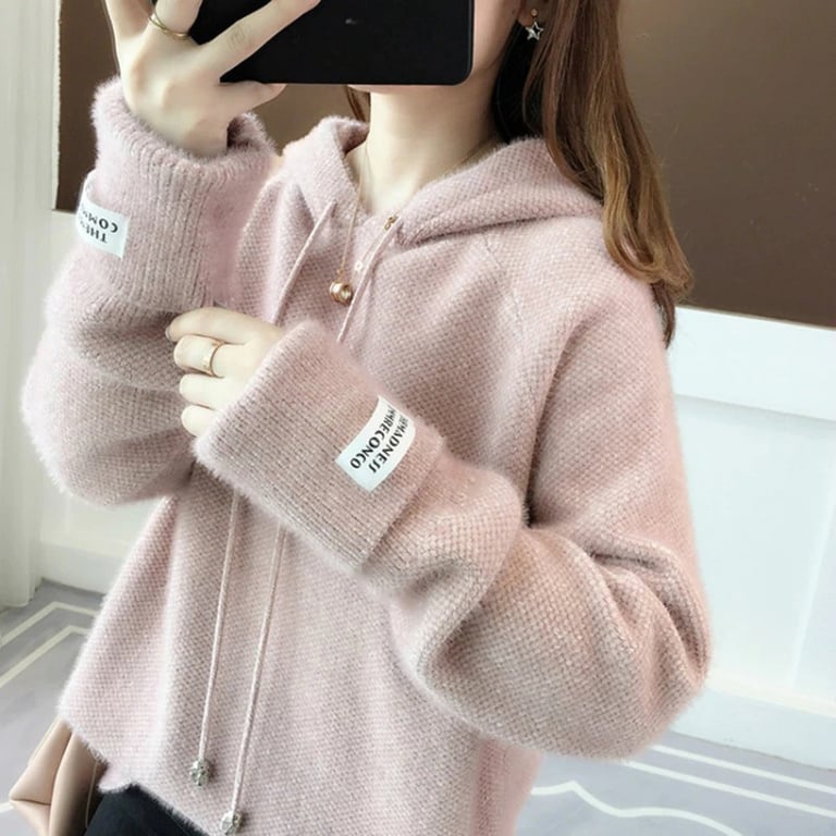Women's fluffy hoodie sweater