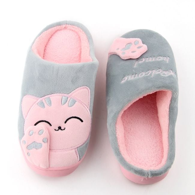 Women's fluffy slippers with a cat motif. Choose from 6 variants.