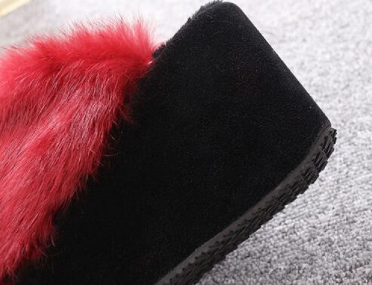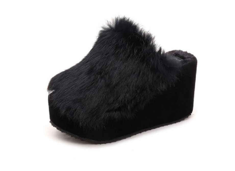 Women's fluffy slippers on a high platform.