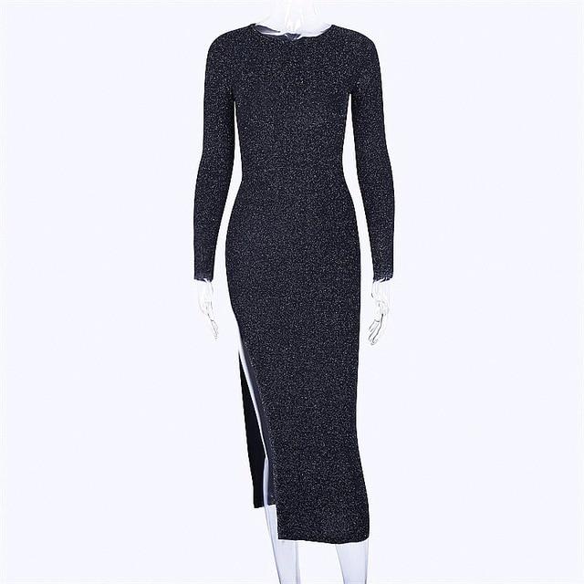 Women's glittery dress with long sleeves.