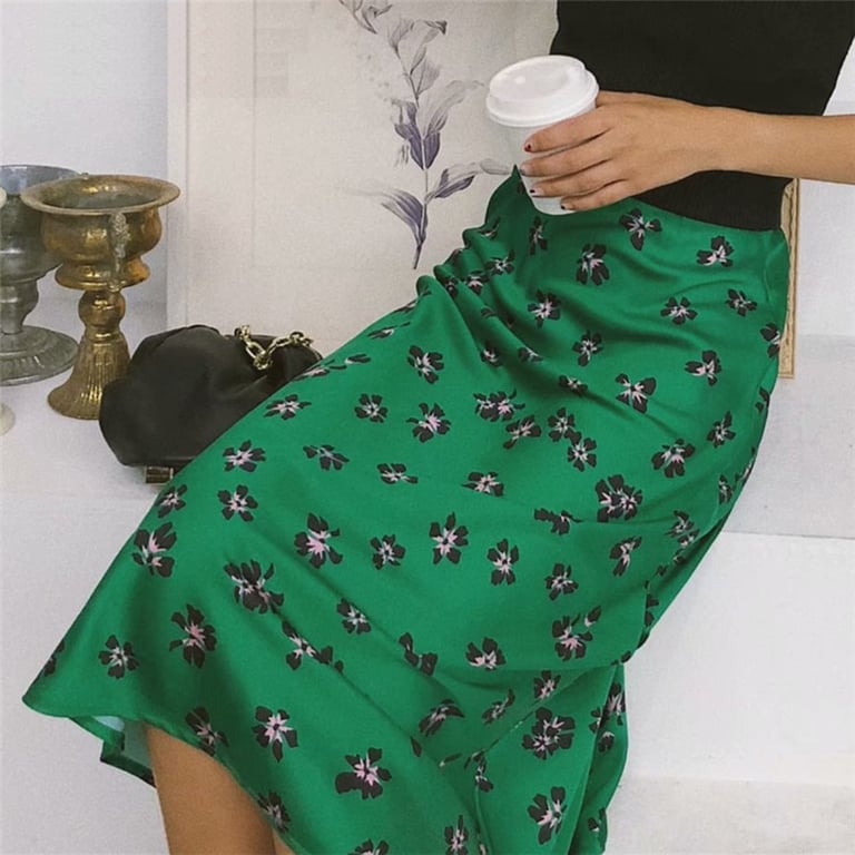 Women's Midi Skirt with Flowers Green