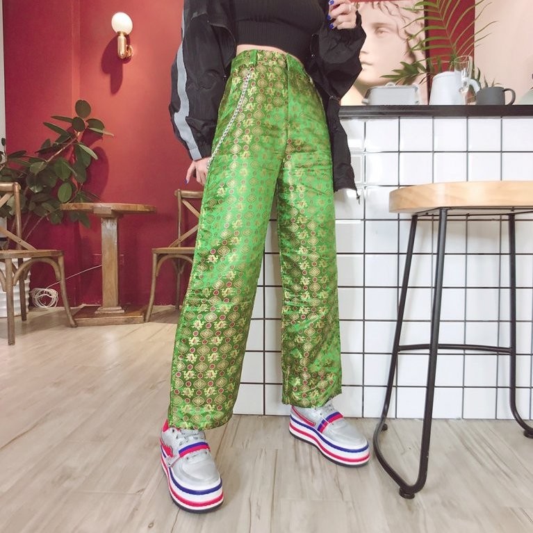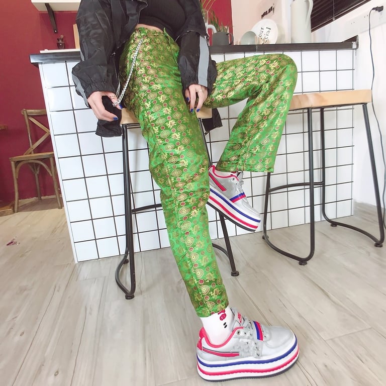 Women's Green Patterned Trousers