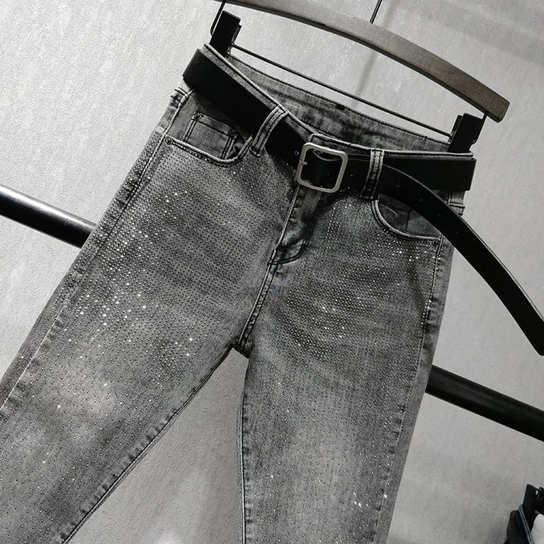 Women's Grey Jeans with Rhinestones
