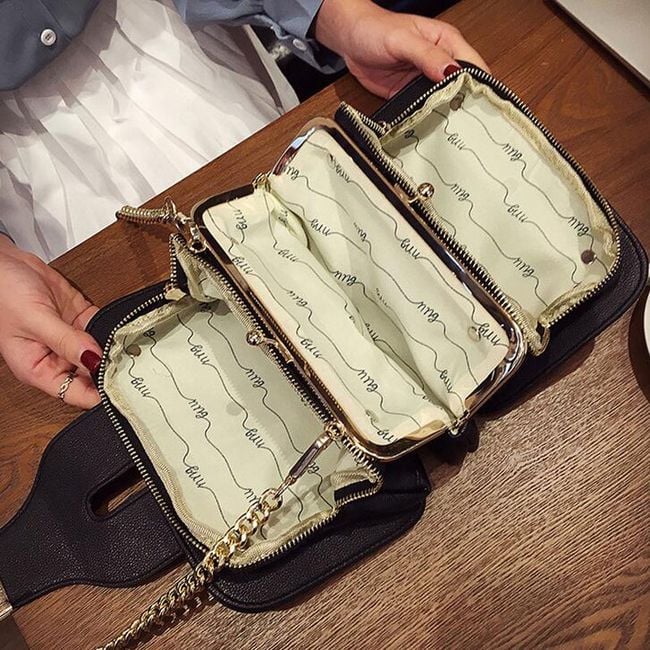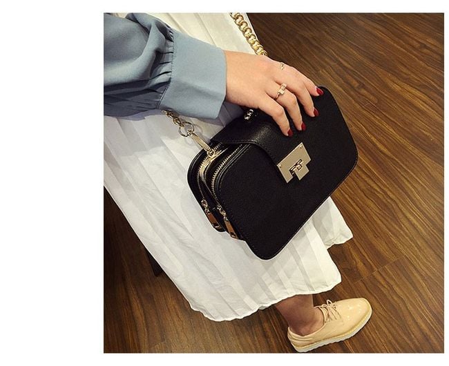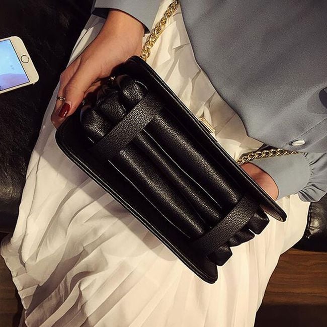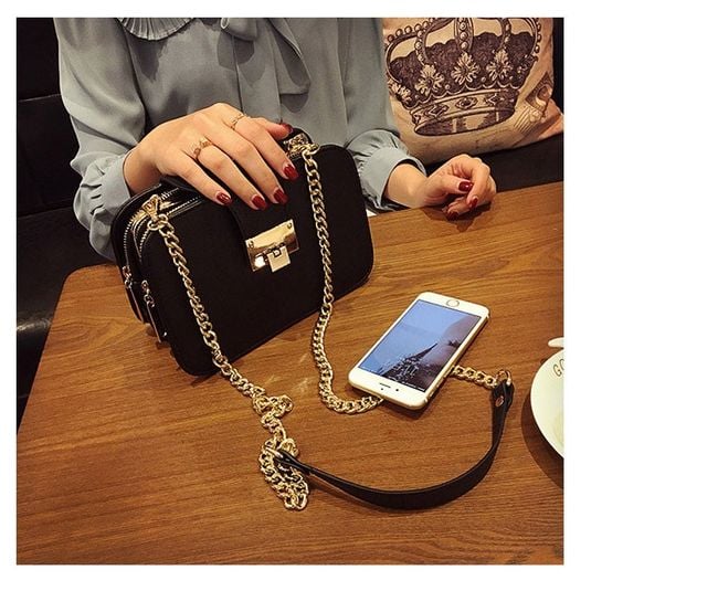 The luxury handbag is suitable for ladies who prefer gold accessories. Inside the handbag, there are 3 pockets with a classic zip closure. The handbag is adorned with a gold chain over the shoulder. With this stylish accessory, you will shine.