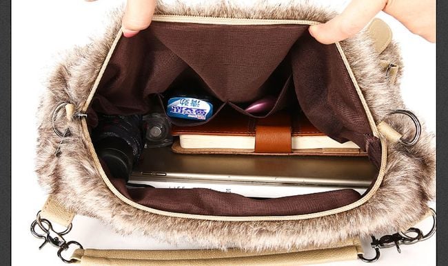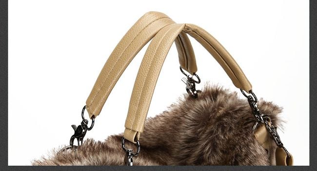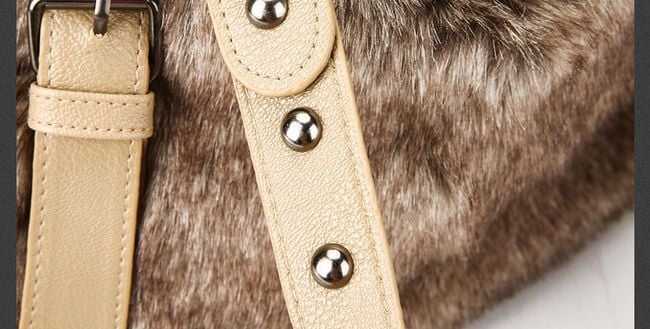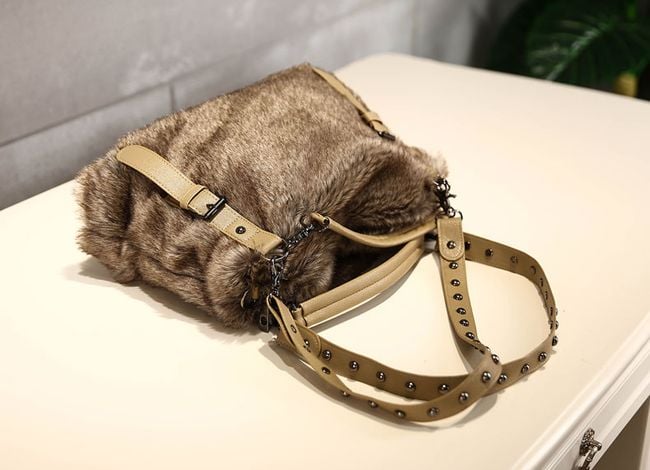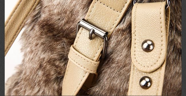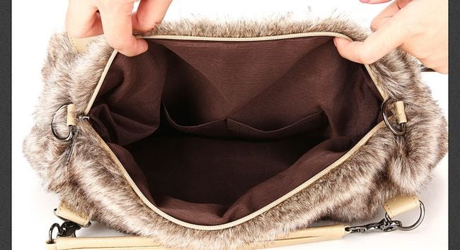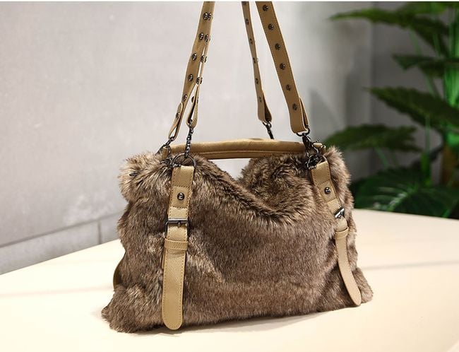 Women's handbag with faux fur in brown colour.