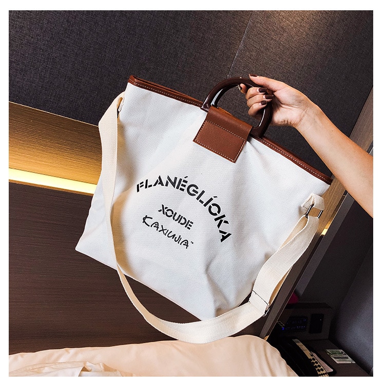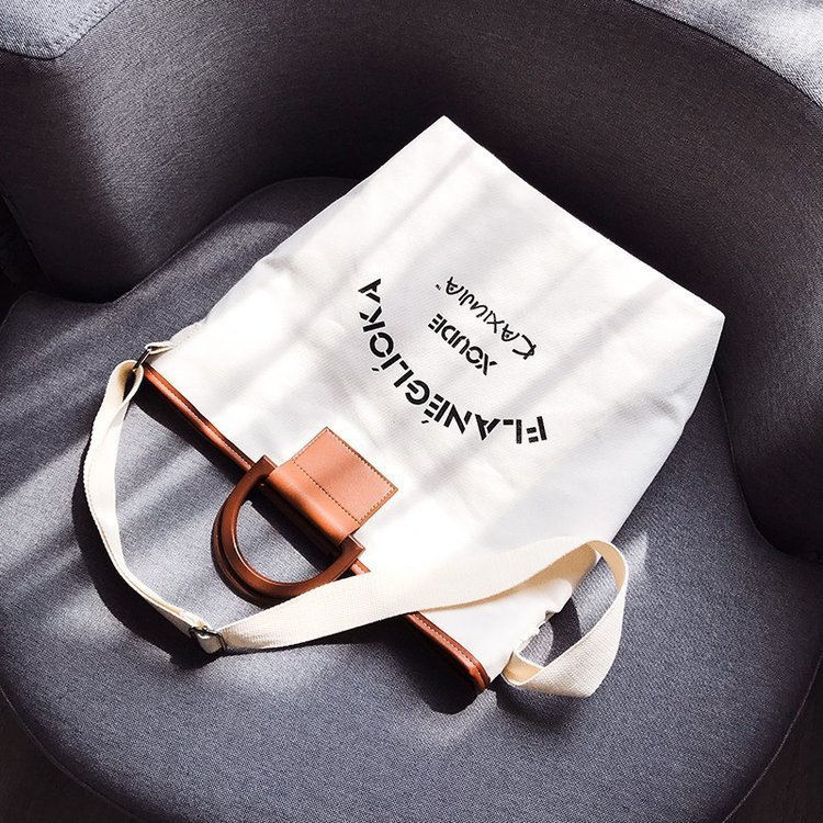 A beautiful women's bag with a label, the bag is suitable for shopping and has a large storage space. The bag can be worn over the shoulder.