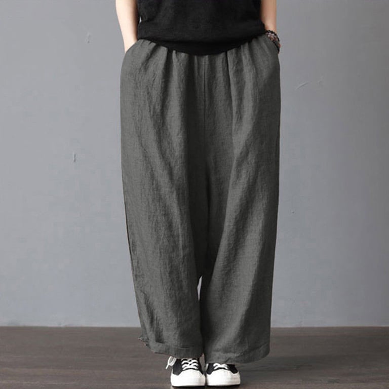 Women's harem trousers with wide legs. The trousers feature two side pockets and an elasticated waistband. Available in multiple colour options.