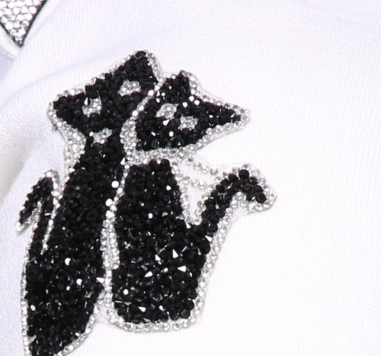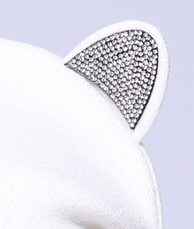 Ears and a picture of cats adorned with rhinestones.