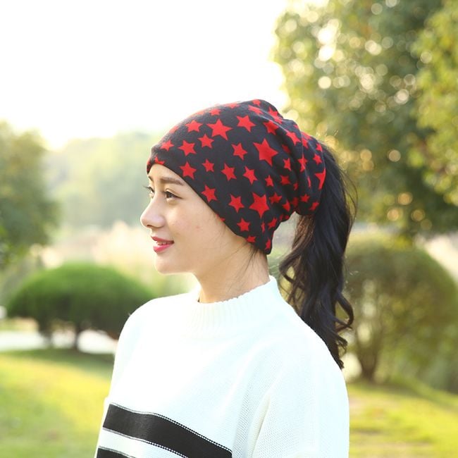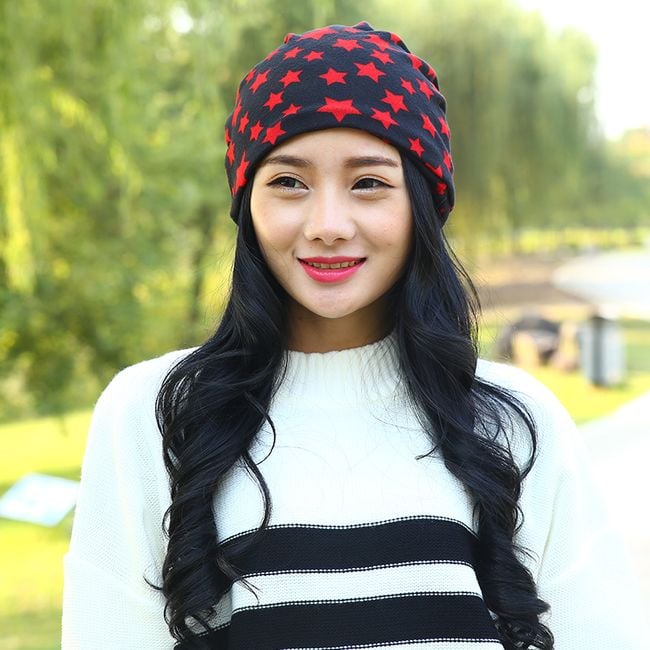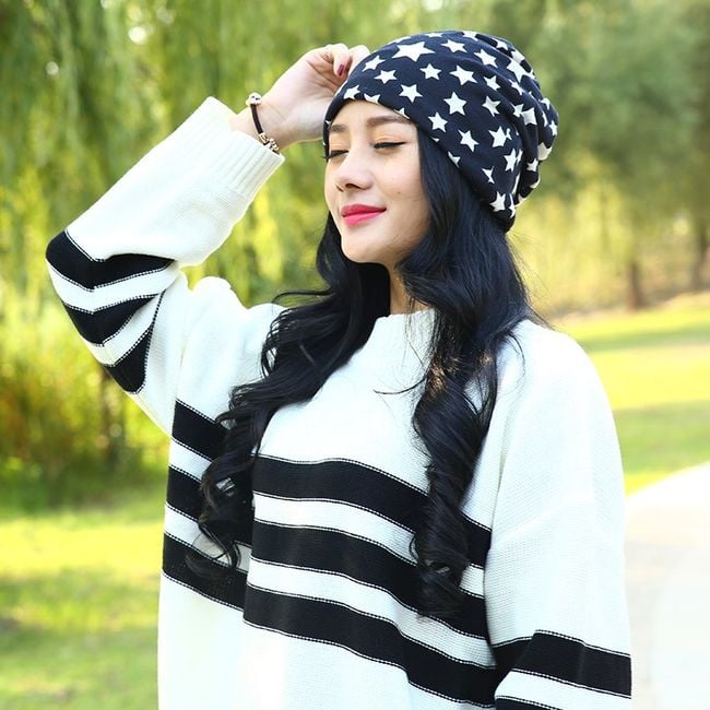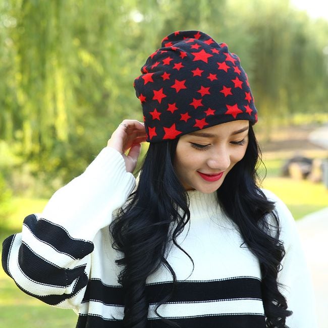 The hat has a star pattern and is ideal for autumn and winter. Choose from 2 colours.
