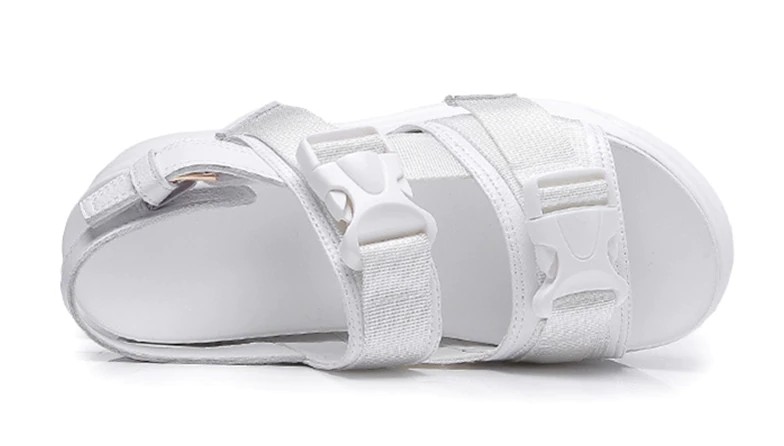 These sandals are very comfortable and of high quality. The sandals fasten with buckles.