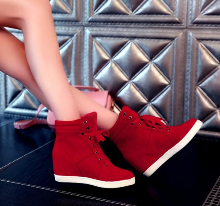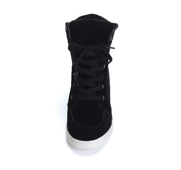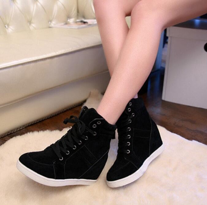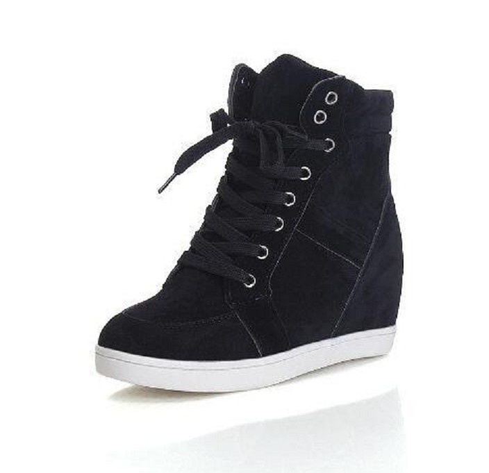 The trainers are high-top and lace up.