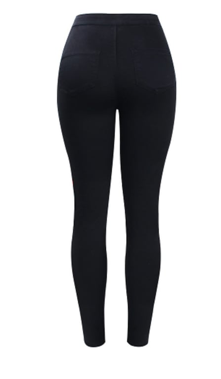 Original women's high-waisted jeans with red flowers on the edges of the thighs.