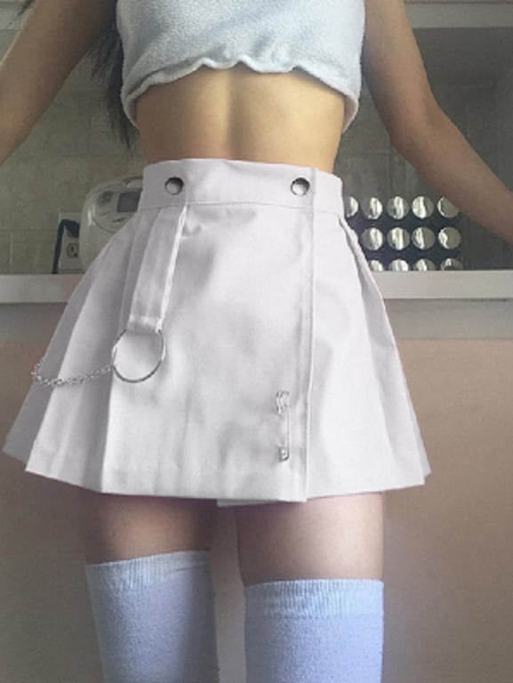 Women's high-waisted mini skirt with a chain.