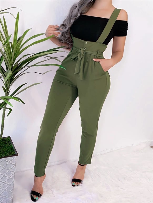 You will look stylish while feeling completely comfortable. The trousers feature a high waist, buttons, and a bow. What is particularly interesting are the suspenders that beautifully adorn the trousers. You can also enjoy pockets.