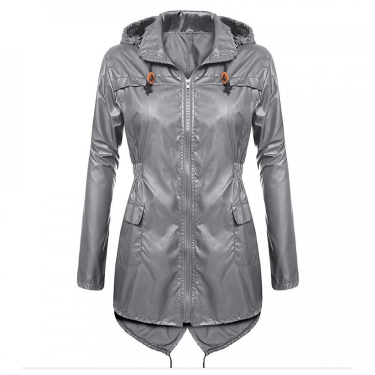 Women's waterproof parka with a hood and collar. Longer cut with an adjustable drawstring at the waist and zip fastening. Side pockets. Available in multiple colour options.
