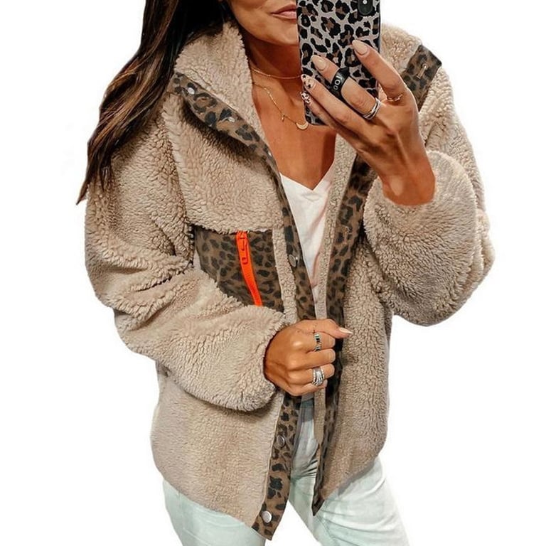 Fleece jacket made of fluffy material with a stylish pocket on the chest.