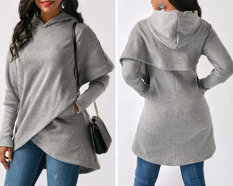 Unconventional style and vibrant colours! The women's poncho-style sweatshirt is available in several sizes.
